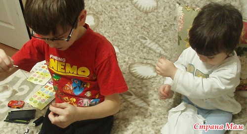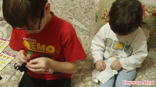 Отвела на диван, пошла за фотиком. Возвращаюсь молодежь шьет