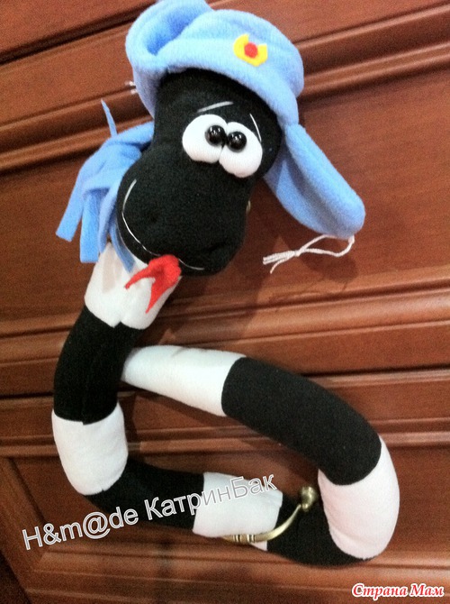 Пригласили на день Варенья друга, подарок покупать уже не было времени. Нужно было как то выходить из положения. И вот он Выход 2 часового занятия... так ка друг ГАИшник и еще в год змеи родился, то мы с мужем придумали вот такого змея ГАИныча))). Я просто предложила что нибудь сварганить, а муж придумал имя )))