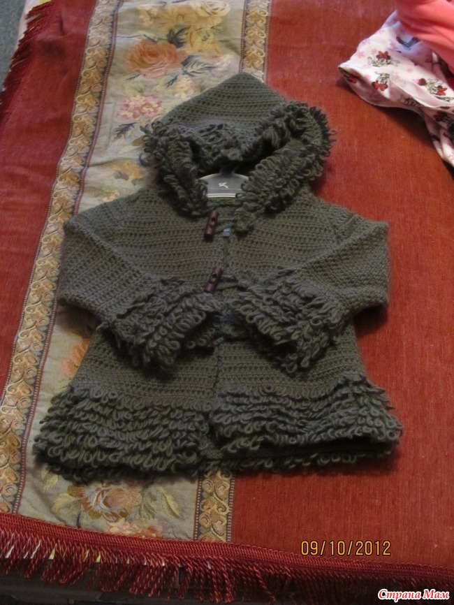 Вот такое пальтишко связалось для малышки. Нитки 100% шерсть (100г-225м), ушло 400г.