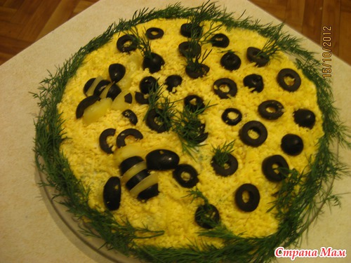 Р.S я делаю 2 слоя мяса, и 2 грибов тогда идут все коржи и торт получается выше и еще вкуснее, Яйца обычно тру белки, а желтки и сыр делаю верхним слоем тогда тортик получается красивого желтенького цвета как на картинке салата мимон! украшаем зеленью, помидорками и как фантазия подскажет!