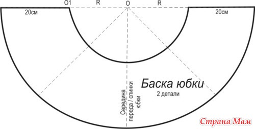 Форма и длина баски на юбке может быть разной. На выкройке приведена баска длиной 20см и одинаковая по всей длине.