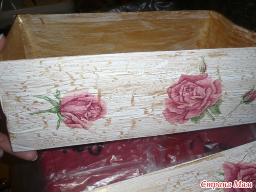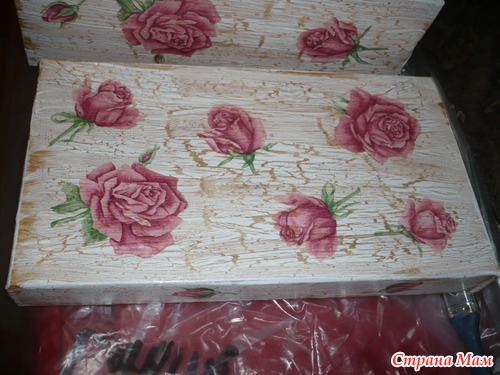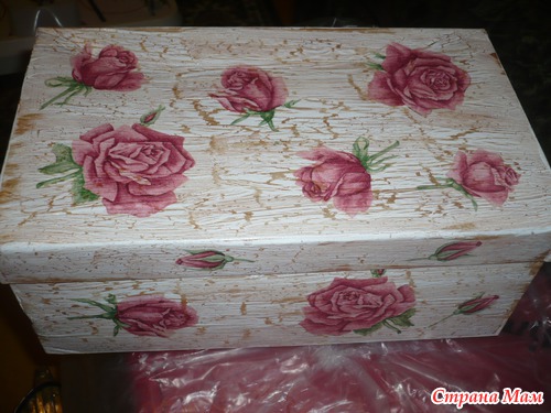 Моя первая проба работы с кракелюром, решила попробовать на старой обувной коробке