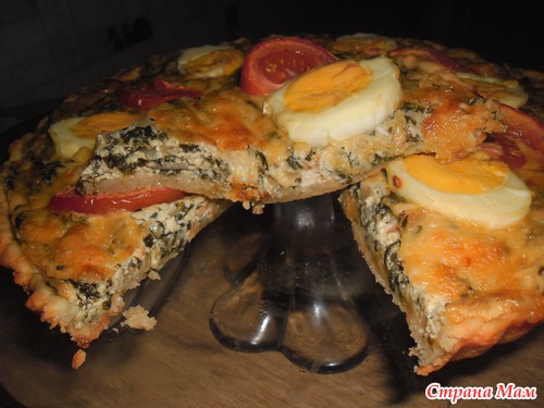 Открытый пирог со шпинатом и яйцами