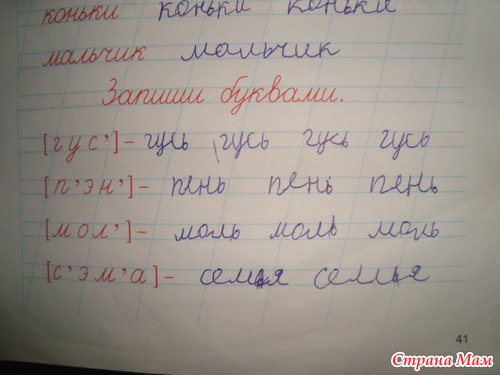 Вот вчера прошли мы ь знак. У нас было проспись, Там запиши слова буквами. Ну записали, а в