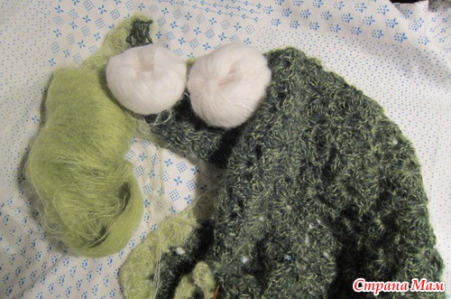 Пришла дамой, стала перебирать пряжу и нашла... темно-притемно зеленый, очень светлый зелены и совершенно белой мохер..