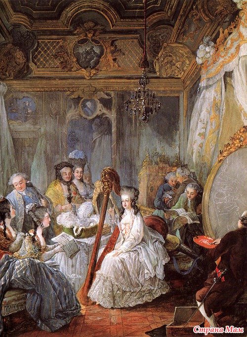 Marie Antoinette playing the harp at the French Court