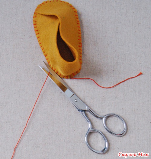 Сшейте тапочек по всему периметру, закрепите нить, обрежьте, заправьте аккуратно концы.