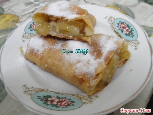 Из такого же теста получаются и вкусные рулетики с яблоками