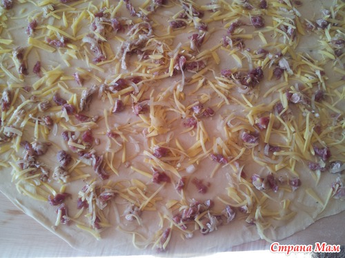 Завернуть рулетом до половины тесто чтобы не получалось слишком толстой.