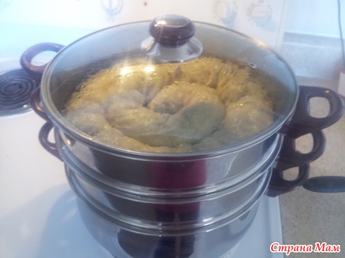 Ставим лист в мантышницу с кипящей водой на большой огонь 45 минут.