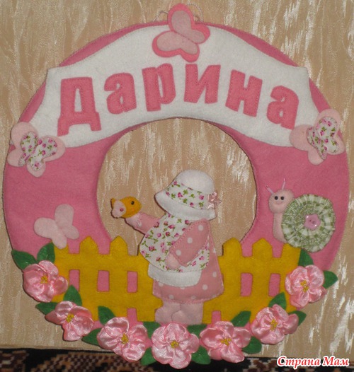 Материал - американский хлопок, лента атласная и любимый фетр. Вот, что у меня вышло: