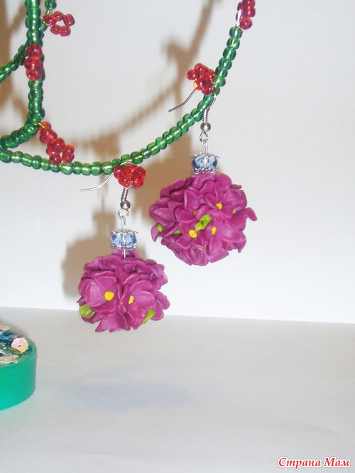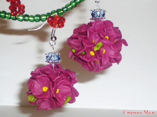 Тэги: полимерная глина, серьги из полимерной глины, сирень