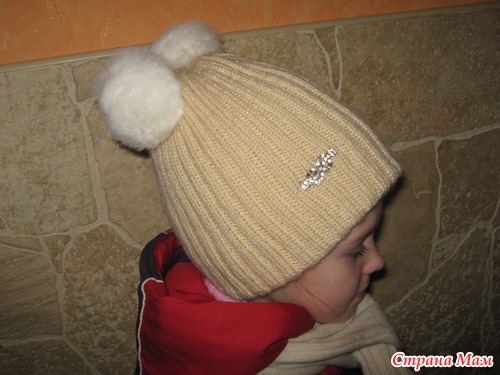 Увидела в магазине шапку за ооочень красивую цену . Денег жалко было, вот и решила связать сама . Шапочка двойная. Пряжа SUPER EXCELLENCE 49% шерсть, 51% акрил, 228 м/100 гр, № 403 (сл. кость) спицы ADDI № 3.5.