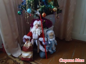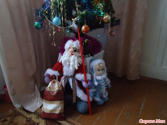 Где-то около месяца, может недели три Точно не помню. Куклу брала у Натулины с Рукодельного зазеркалья, но одежда авторская была, то есть придумывала ей костюм сама. А деда Мороза с хобби портала. Почти как в оригинале. Самое интересное, что его автор-мужчина. Только мешок связать не успела, пришлось сшить (кусочек от шторы оставался подходящий )