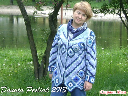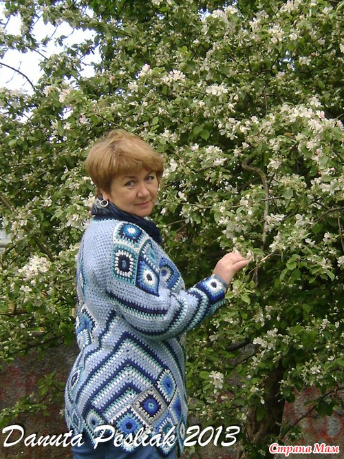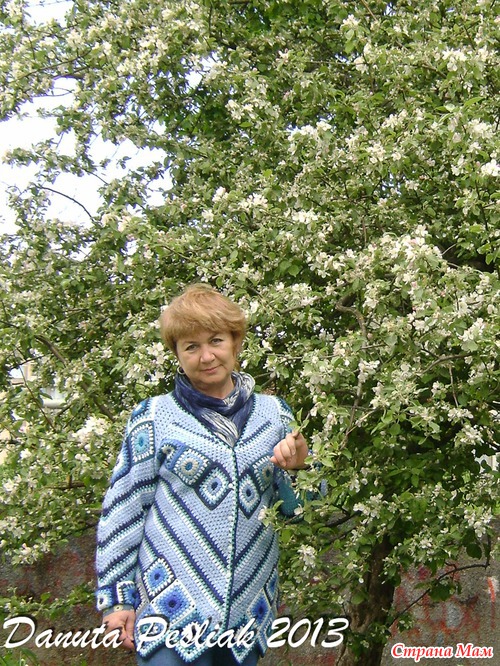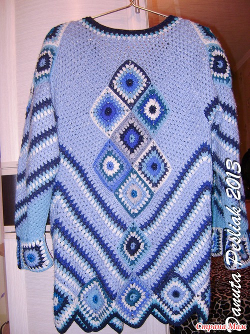 Как-то обнаружила, что насобиралось в остатках много сине-голубых клубочков. Появилась идея сделать что-то в технике "пэчворк", и - вот что получилось! Неожиданно для себя обнаружила, что люблю этот кардиган: теплый, уютный, веселенький! Так что не спешите расставаться с остатками ниток, может быть, мой вариант придется кому-то по вкусу, хотя сама идея, в общем-то, не нова, а вариантов - множество.