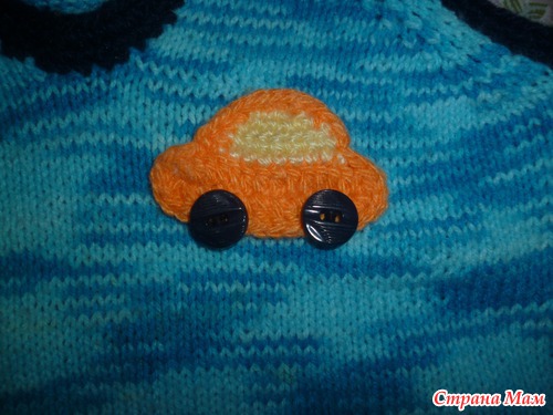 Просили схемку машинки, пожалуйста, вяжется минут за 15 крючком, правда я еще столько же пуговицы пришивала