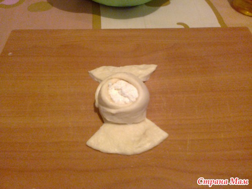 Сначала вокруг начинки защипаем один лепесток,