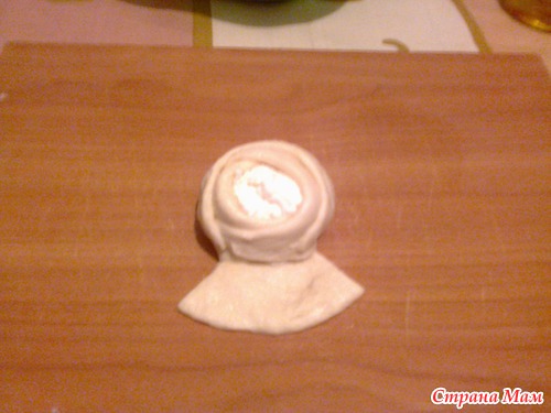 на доске разминаем из него лепешку
