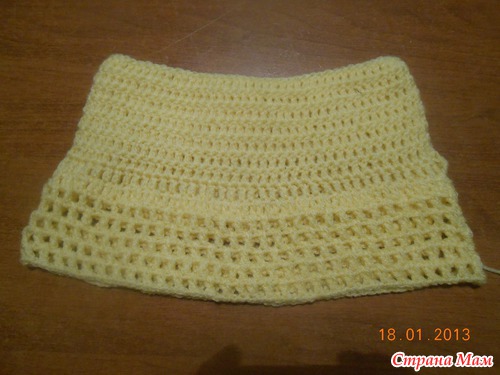 Милые рукодельницы! Помогите пожалуйста, я начинающая вязальщица, увидела в инете фото очень красивой юбочки, решила попробовать связать. Связала кокетку и часть филейной сетки и на этом моя работа встала, не могу понять вязать ли всю сразу филейную сетку или по частям? Первый слой воланов на этом этапе начать вывязывать? Если сейчас вязать воланы, то как потом продолжать вязать филейную сетку?