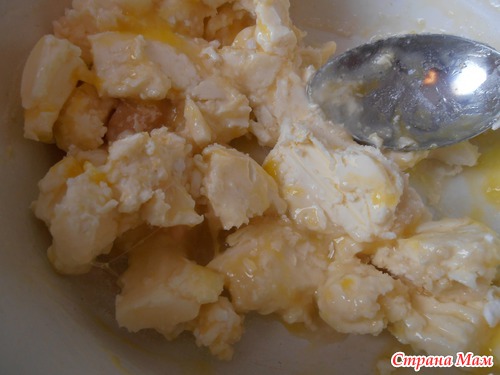 Ну приступим маргарин с сахарной пудрой размять, до полного растворения пудры и до получения однородной массы