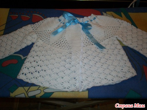 Классненький! У меня вопросик - какой метраж у Ваших ниточек? А то я тоже пыталась связать такой, подобрала нитки, как в описании, но размер получился ого-го! И если не трудно, какой диаметр у Вас получился у болероши ( внутренний и внешний), и на какой возраст Вы вязали? Спасибо заранее.