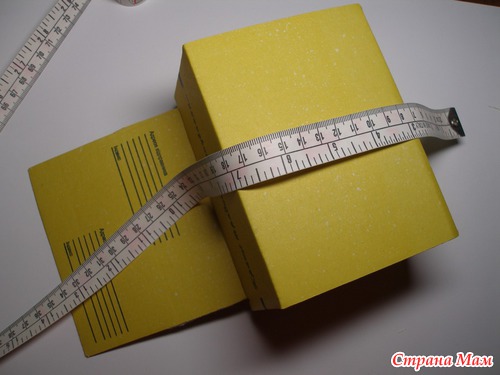 2. Измеряем вашу коробочку. Нам понадобиться длина, ширина, глубина и размер коробочки вокруг, который включает в себя боковушку, дно, боковушку, крышку