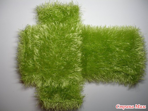 4. Внешняя зеленая часть. По этим же размерам и такой же формы вяжем лицевой гладью из травки зелёную внешнюю часть шкатулочки.