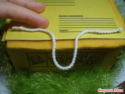 Для петельки я скручивала шнурочек из белой пряжи, можно просто сделать из толстой пряжи или резинки или связать цепочку из воздушных петель.