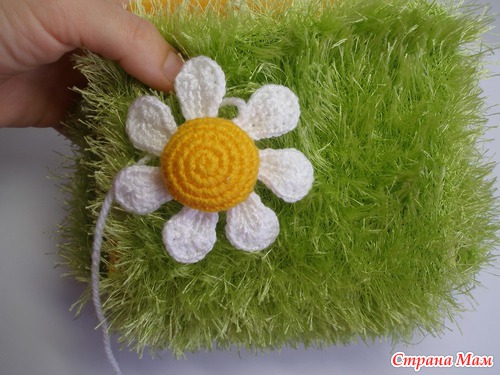 6. Подбираем пуговицу, делаем петельку, вяжем игольницу ромашку.