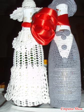 В сентябре прошлого года женила сына и связала наряд на шампанское. На столе очень красиво смотрелся. Мой первый опыт вязания крючком. Читать полностью