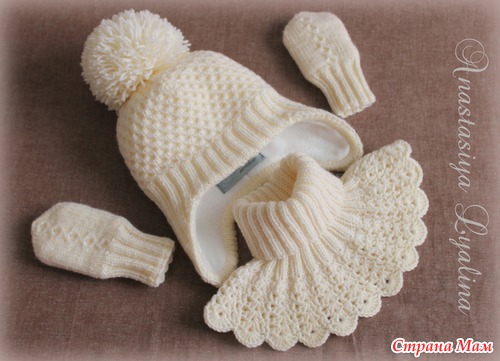 Пряжа ЯнАрт Мерино де люкс (501) 50/50. Шапка и варежки утеплены флисом.