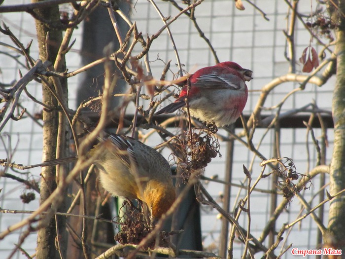 А у меня в кормушке пасутся всякие синицы, снегири, зеленушки, ну и воробьи, конечно. Сегодня две зеленухи подрались за семечки, я всё бросила и стояла любовалась)))