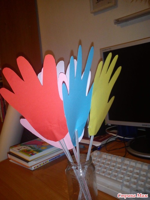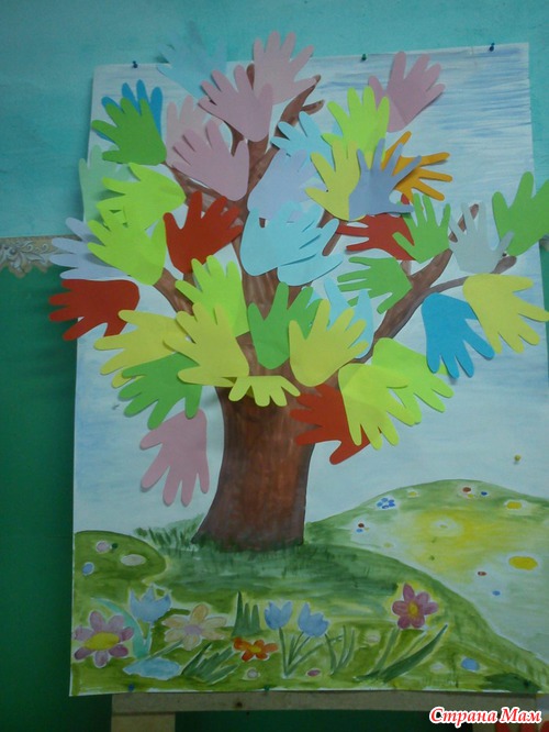 А сам по себе праздник очень прост-ДАРИМ улыбки друг другу, Сотворяем радостное пространство вокруг при помощи музыкальных и речевых игр о ладошках. про ладошки и с ладошками, мы зажгли Ладошковое Солнышко, посадили ладошковое дерево и подарили друг другу цветы из ладошек!