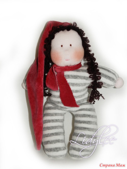 24-26см. Состав: трикотаж 100% хлопок, шерсть овечья 100%, велюр 80% хлопок, 20% полиэстер, пряжа мохер. Внутри вшиты мешочки с лавандой. По идее кукляшки обладают успокаивающим действием. Чем дольше держишь их в руках, тем они теплее. Подходят для детей от 1 года.