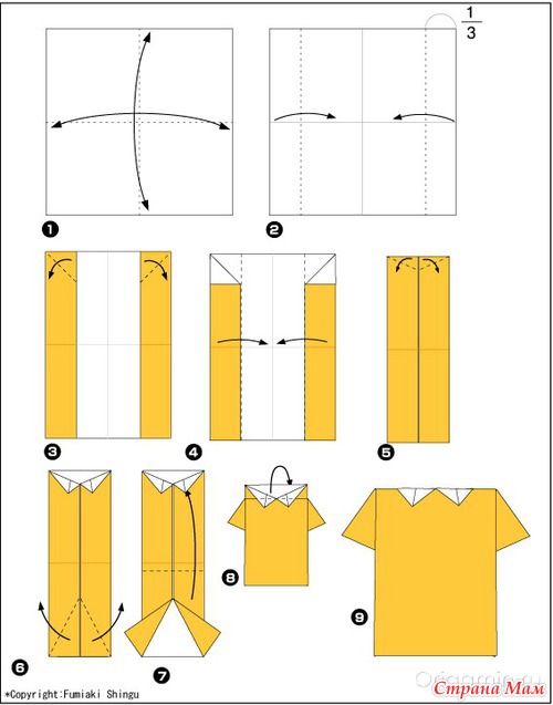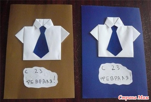 Такие рубашки -оригами могут стать частью открытки или выполнять роль открытки-конверта.