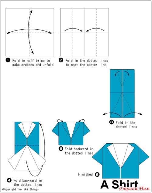 Такие рубашки -оригами могут стать частью открытки или выполнять роль открытки-конверта.