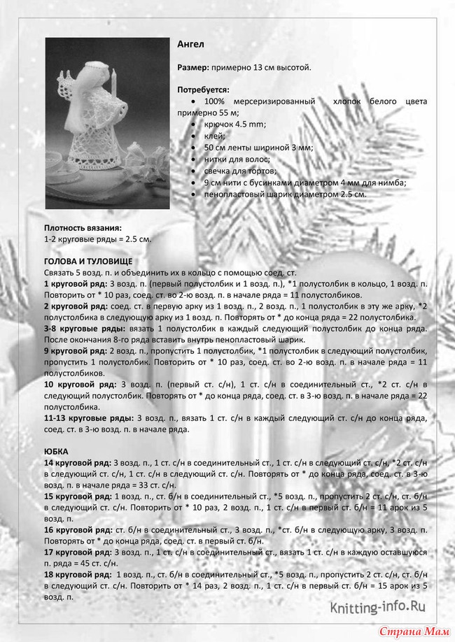 Помогите найти продолжение к описанию ангела. Очень хочу такого связать, но к сожалению сохранила только одну страничку. Уже пробовала через поиск, но безрезультатно.