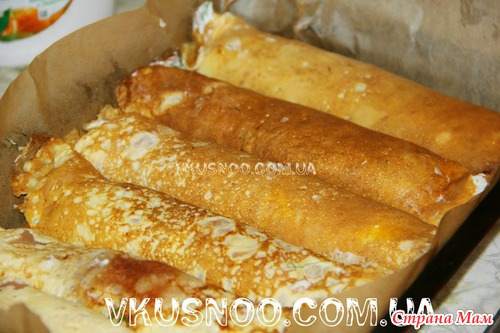 Скручиваем омлеты в рулетик и аккуратно отправляем в форму для запекания. Таким образом у нас получается 6 рулетиков.