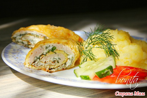 Этот рецепт немного отличается от классического. Как по мне он намного оригинальней и интересней в подаче. Для этого рулета посоветую брать только куриный фарш, он суховат, но в этом его и преимущество. С помощью нашего секретного слоя, бризоль станет сочным и очень вкусным.