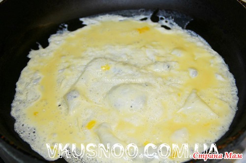 Яйцо взбиваем и выливаем на сковороду. Обжариваем с двух сторон. С молоком не переусердствуйте, добавляйте не больше чем указано у меня в рецепте. Вы же не хотите что бы омлеты были нежными и разрывались прямо в сковороде! Ну вот и я не хочу, что бы вы потом жаловались что у вас не вышло.