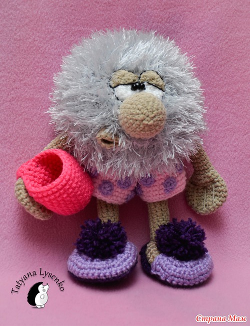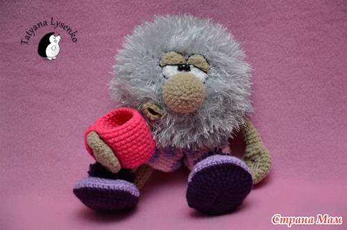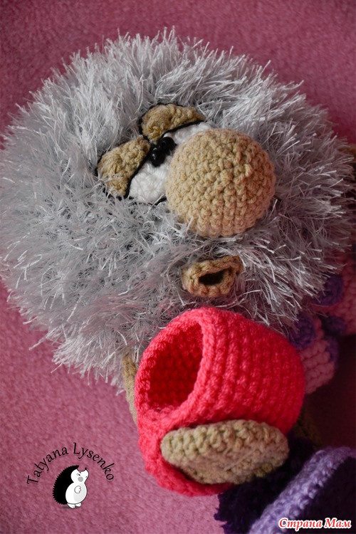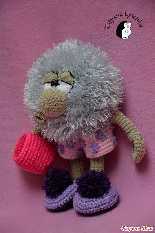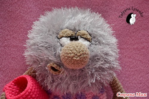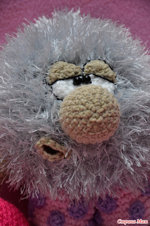 Ну очень уж напоминает мне всех своих знакомых после длительных новогодних праздников, поэтому и связала его на одном дыхании, хотелось как можно скорее повеселить всех такой смешной мордашкой.