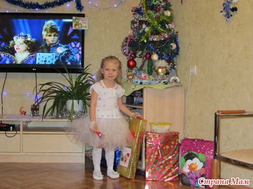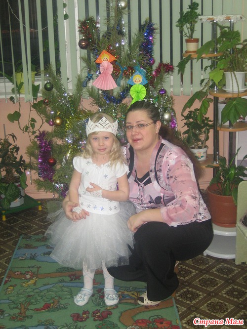 Вот такой костюмчик подготовился к прошедшим праздникам и утреннику! Пышная юбочка из фатина, вязанные корона, митенки и балеточки, футболочка покупная (еле нашла, в магазинах ни одой не было), расшила ее пайетками-снежинками.