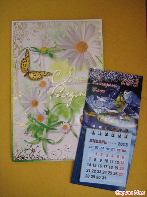 ну а теперь по отдельности - открыточка с добрыми словами пожеланиями от Оленьки и календарик на этот год - как он нужен, чтобы постоянно не лазить в телефон, будет всегда под рукой
