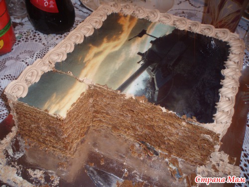 Это торт для мужа - помешанного на игре в танчики на компе. ДР было в октябре, но так как тогда все болели, то торт сообразили по возможности. Внутри торт "Спартак"- репетирую на своих.