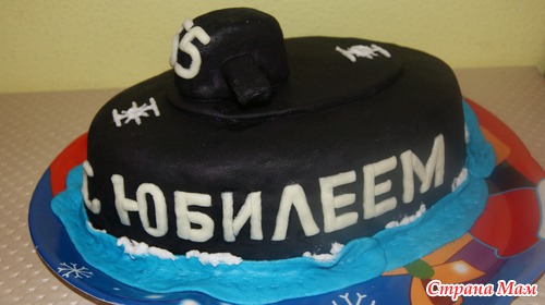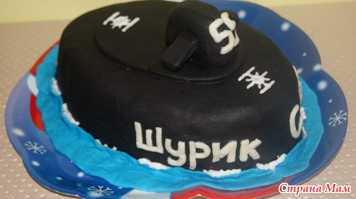 Всем добрый вечер, вот показываю вам свой новый тортик, на подводную лодку правда он не очень похож, уж больно широкий, но заказчикам очень понравился, сказали что все гости с ним нафотографировались)))) а внутри коржи от "молочной девочки" крем масло со сгущенкой и карамелизованные грецкие орехи. Делала первый раз и даже сама не знаю как на вкус такой торт, опять же по словам заказчиков, торт просто вкусняшка, когда же будет праздник, чтобы сделать такой домой