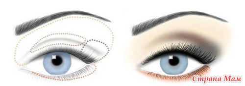 Карандаш или подводку наносят немного повыше контура глаз и растушевывают по направлению от внутреннего края к внешнему краю.