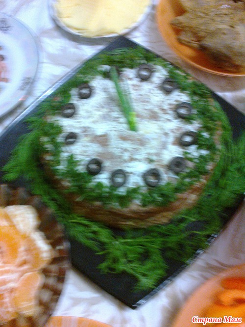 Вот и я наконец-то собралась похвастаться! Представляю Вам свои новогодние блюда: Печеночный Торт"Часы пробили 12" , Салат из кальмаров"Змея" Заливное из сердечек, желудков и крыльев утки"Роза" Читать полностью