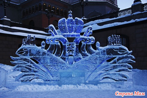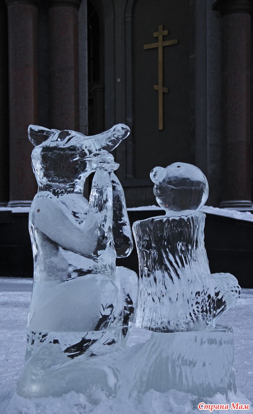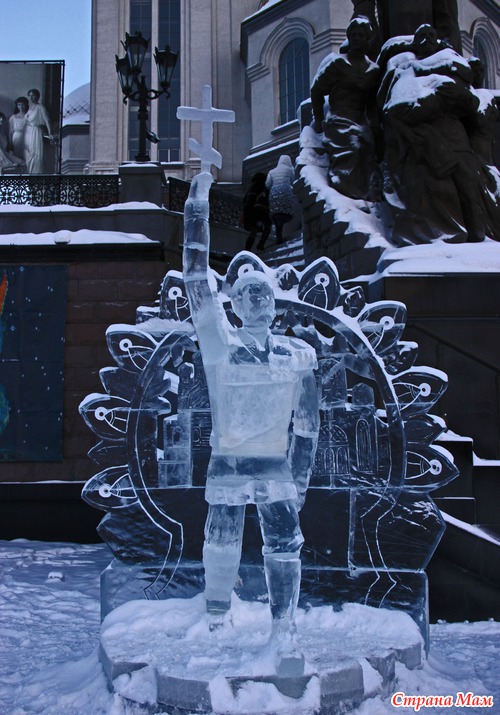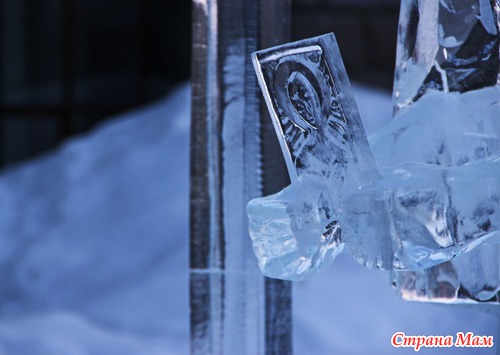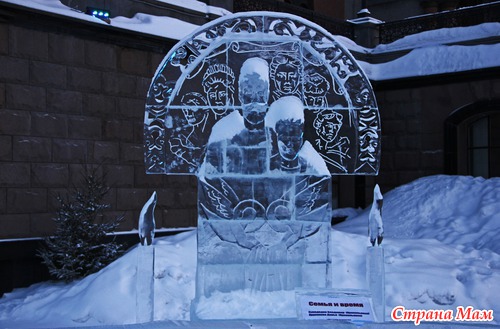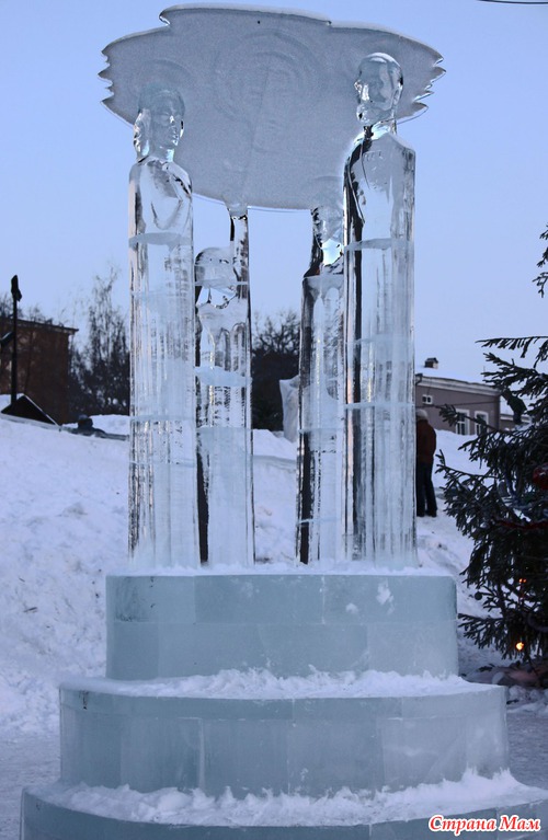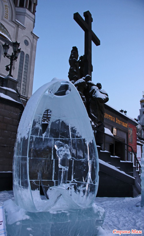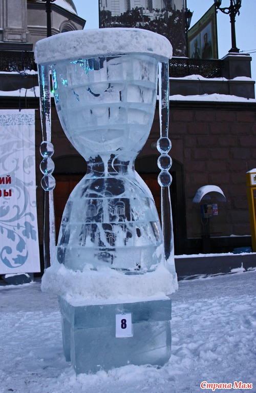 Скульптура «Возрождение веры». Церковь высечена изо льда в виде песочных часов. Песок – образ времени, которое течет, оживляя веру в сердцах людей.