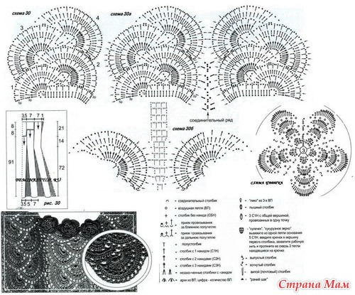 По схеме 30 выполните крючком образец ленты и проверьте его на соответствие размерам, указанным на рисунке 30. При необходимости увеличить (уменьшить) ширину полосы возьмите крючок большей (меньшей) толщины.