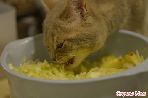 (это вы не подумайте, что от голода так он набросился на нее, голодным этот товарищ никогда не уходит с кухни)Да, вот такие у нашего кота кулинарные пристрастия, помимо его обычной кошачьей пищи